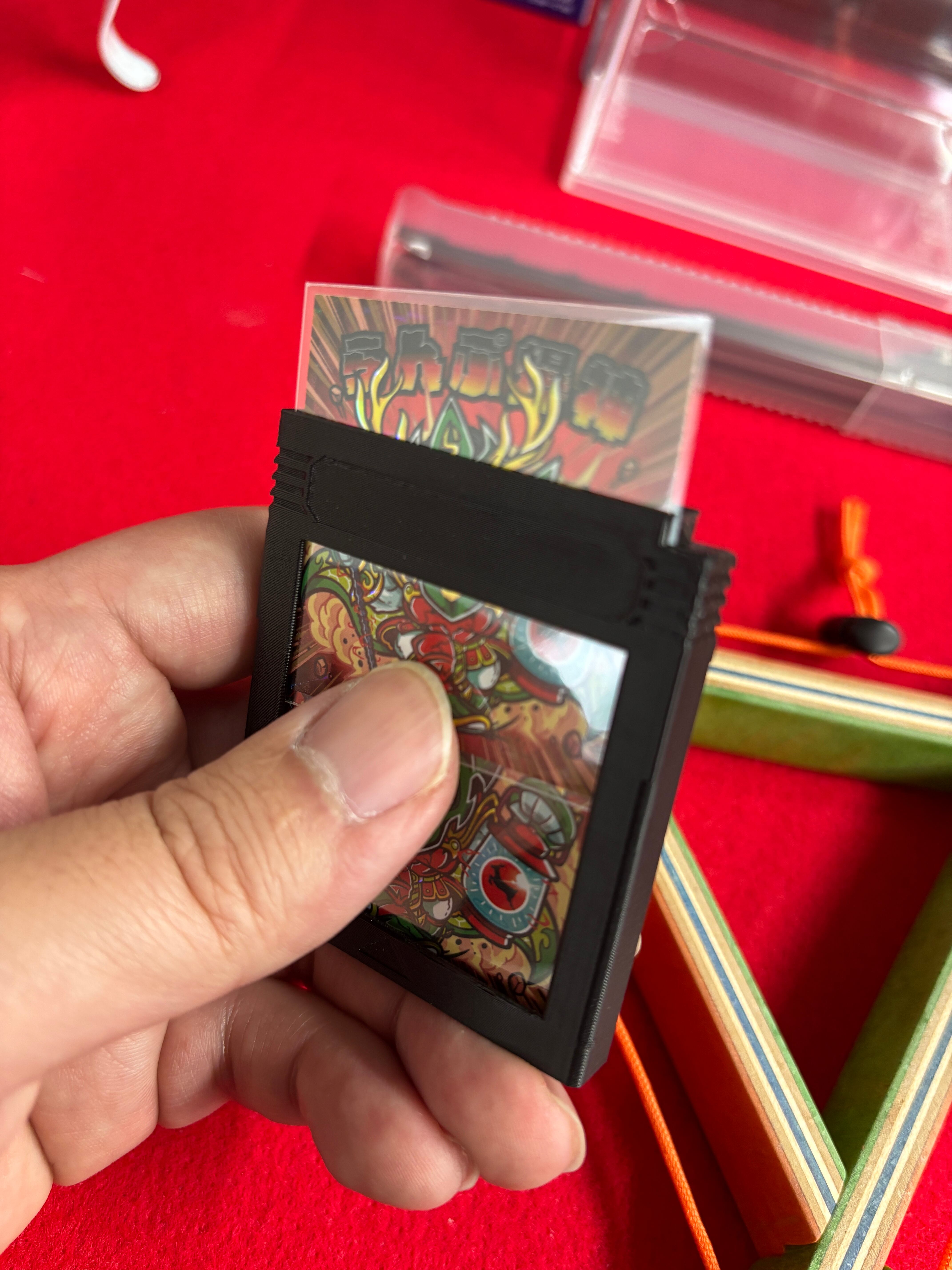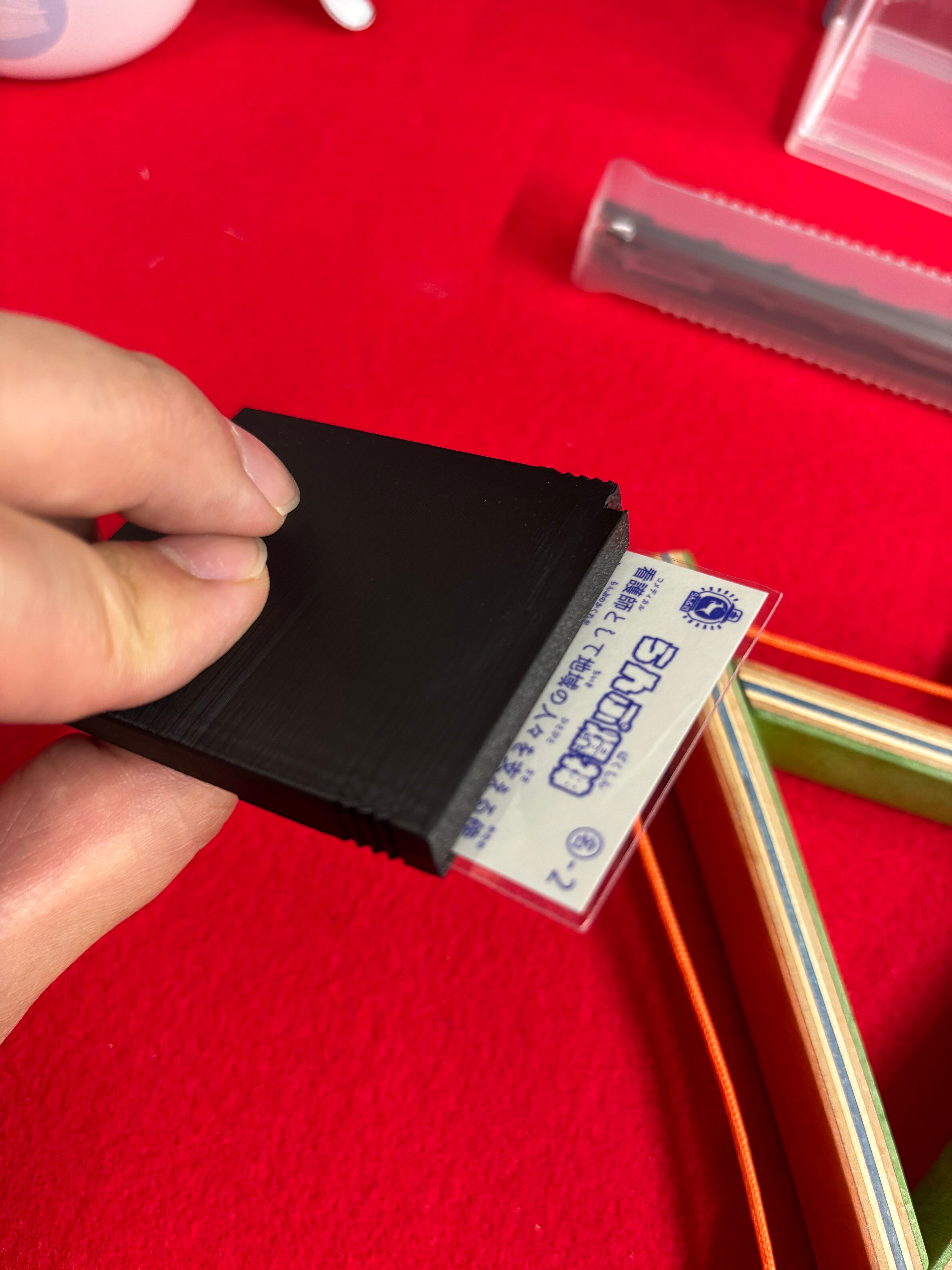 このケースは某ゲーム機のソフトと同サイズで作製されており、48×48mmのシールはスリーブ入りで10枚ちょっと入ります。