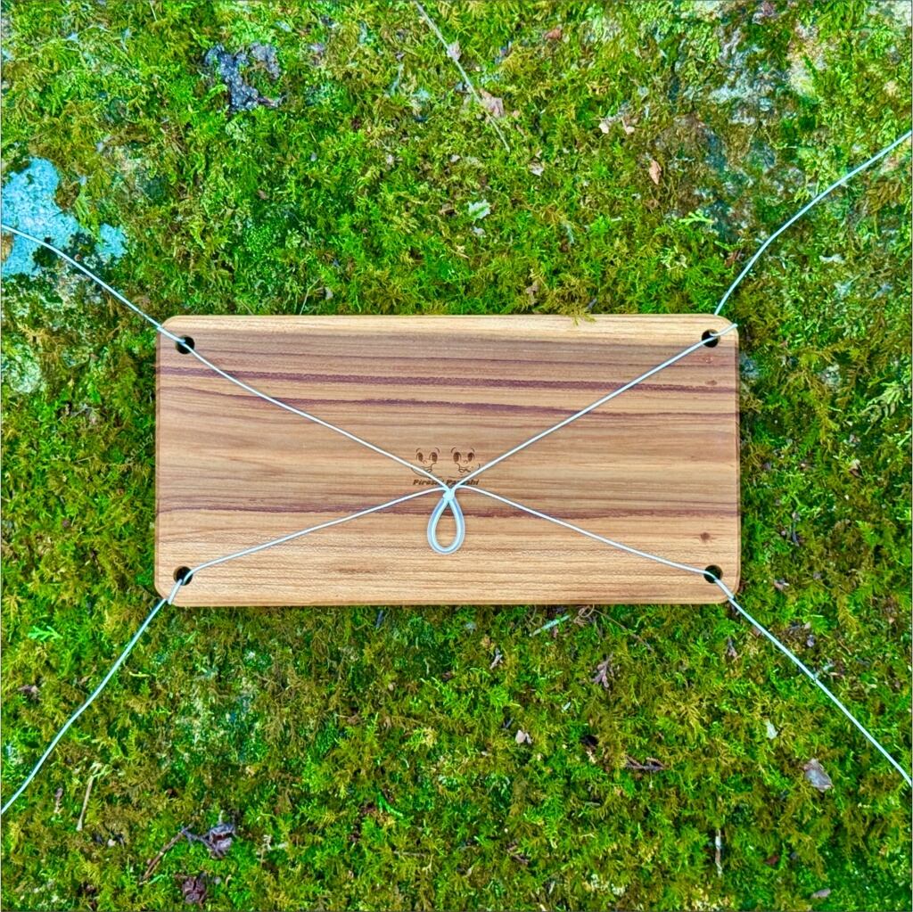 シンプルなチーク製のプレートです。専用のSling(超高分子量ポリエチレン製)で吊ったり、石や木の枝を使って、好きな角度に調節できます。古材特有の傷や穴は、同じチーク材の粉を用いて職人が補修しております。数々の木材で試作し、やっと辿り着いた理想の木材 "古材チーク" の風合いをお楽しみいただけたら幸いです。地球にやさしいリサイクル品。Made in Mt.ROKKOH。