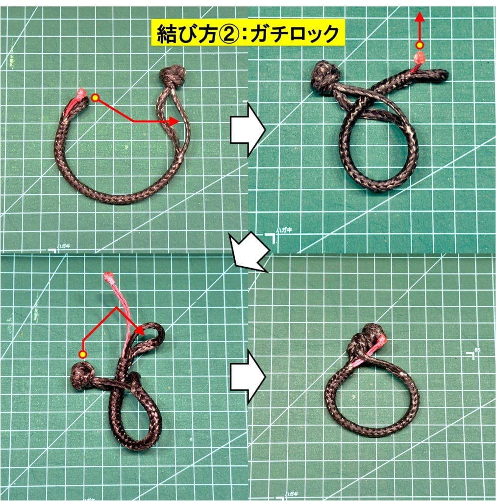 使い方は、簡易に係止可能なゆるロック(写真4参照)と、強固に係止可能なガチロック(写真5参照)が選べます。用途によって選択してください。Made in Mt.ROKKOH。
