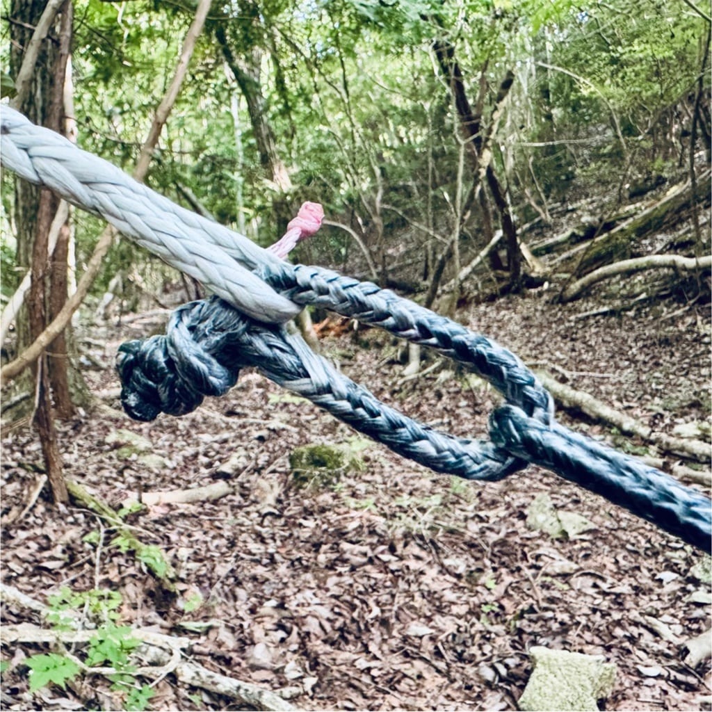 僅か3㌘程度のソフトシャックルです。カラビナの代わりに使用できるので軽量化したい方はいかがでしょうか。オススメは、ハンモックのツリーストラップのエンドです(写真3参照)。ツリーストラップをハンモックに接続した状態で、ツリーストラップを木に巻き付けることができるので、より楽にハンモックを設営することができます。